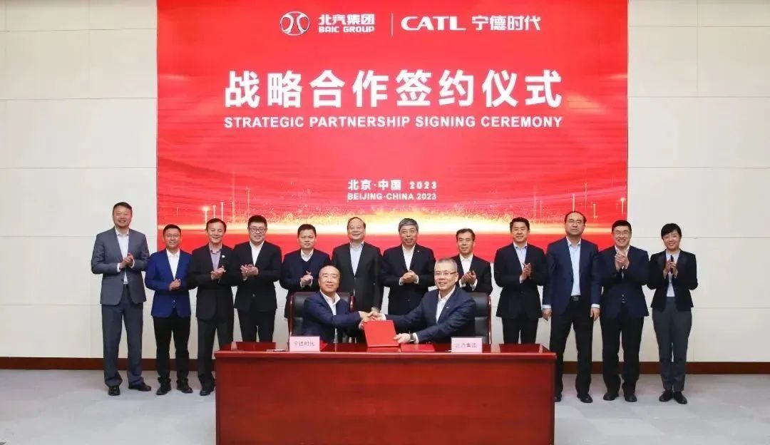 北汽集團黨委書記、董事長姜德義,總經(jīng)理張夕勇,副總經(jīng)理劉宇、胡漢軍,總經(jīng)理助理常瑞、陳巍,寧德時代董事長曾毓群、市場體系聯(lián)席總裁韓偉、國內(nèi)乘用車事業(yè)部總裁朱威、CFO鄭舒出席簽約儀式。