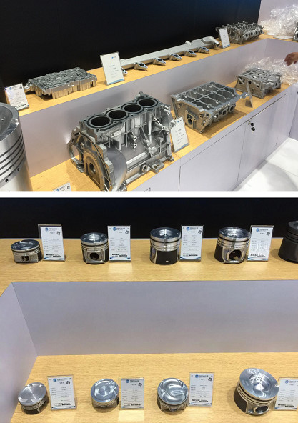 海納川旗下渤海汽車股份有限公司此次攜海納川(濱州)輕量化汽車部件有限公司(簡稱:濱州輕量化)、濱州活塞有限公司(簡稱:濱州活塞)、濱州博海精工機械有限公司(簡稱:博海精機)聯合參展。濱州輕量化展示了北汽目前使用的發動機缸體缸蓋、自動變速箱殼體等輕量化鋁鎂合金零部件;渤海活塞展出了用于乘用車、高端商用車、農機、工程機械、船舶、發電機組等內燃機的活塞產品共47款;博海精機展示了先進的內燃機零部件包括活塞在內的自動化加工生產線、自動檢測及裝配設備等。目前,渤海活塞產業覆蓋活塞及組件、精密數控機床、高科技新材料等領域,是國內唯一一家能夠全面生產各種汽車、船舶、工程、軍工等動力機械用活塞的專業化企業,主要產品∮30mm-∮350mm的高性能活塞品種達1000多個,年產能3000萬件。