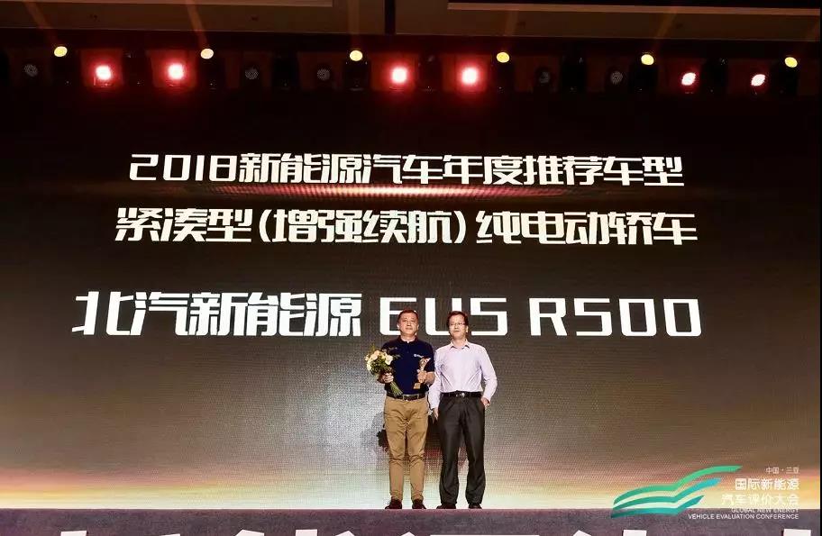 北汽新能源EU5 R500榮獲2018新能源汽車年度推薦車型緊湊型純電動轎車獎