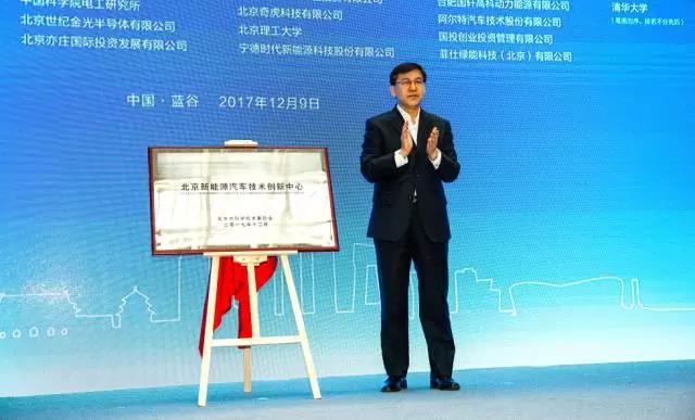 北京市委常委、副市長陰和俊為北京市新能源汽車技術創新中心揭牌