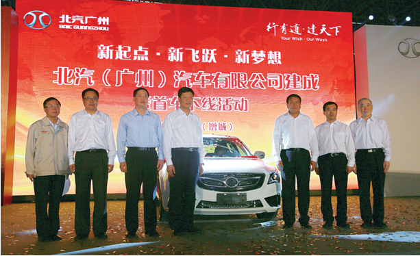 4 月2 日下午,廣東增城市連續(xù)多日的暴雨天氣轉陰為晴,在美麗的荔鄉(xiāng)東隅、增江之畔,一座比肩國際一流工廠的現代化汽車生產基地內人聲鼎沸、氣氛火熱。廣州市市長陳建華、增城市委書記歐陽衛(wèi)民、市長羅思源及增城市各委辦局領導,北汽集團黨委書記、董事長,總經理張夕勇,北汽股份公司總裁李峰及北汽股份采購本部、汽車研究院、海納川公司等有關單位負責人,與北汽廣州公司職工共同見證北汽廣州公司生產基地建成投產以及首輛新車的順利下線。